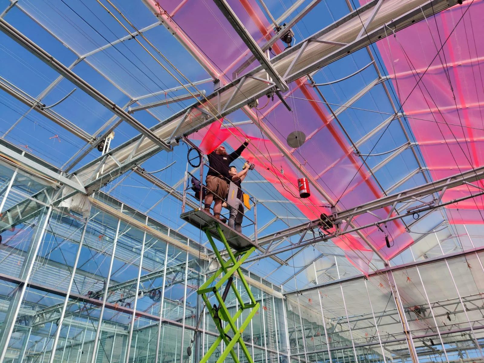 Le film est installé à l'intérieur des serres. Robuste et durable, le film peut être facilement installé ultérieurement en le vissant, en le fixant ou en le suspendant aux structures existantes des serres.
