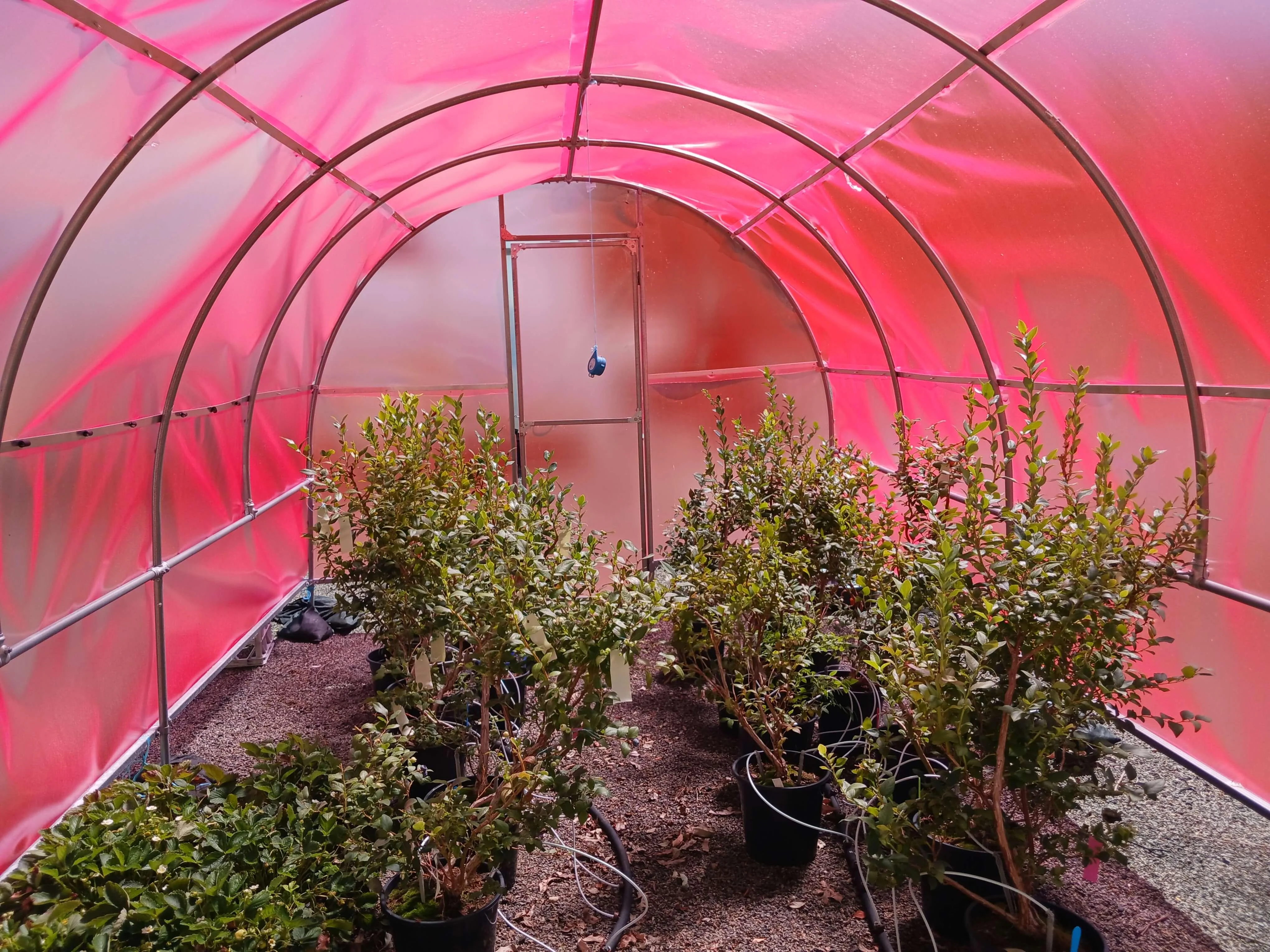 Il film per serre in policarbonato LLEAF è trasparente e appare rosso. Ciò è dovuto alla variazione dello spettro cromatico causata dai coloranti brevettati da LLEAF, che vengono miscelati nel film durante la produzione.